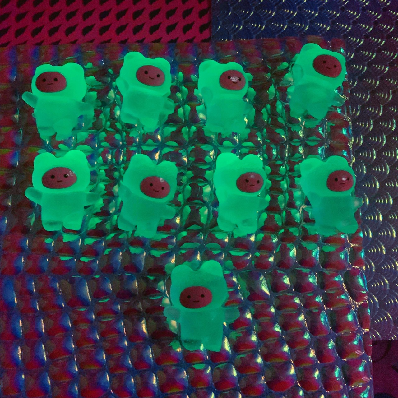 暗闇で光る半透明の小さいクマです。カチコチです。