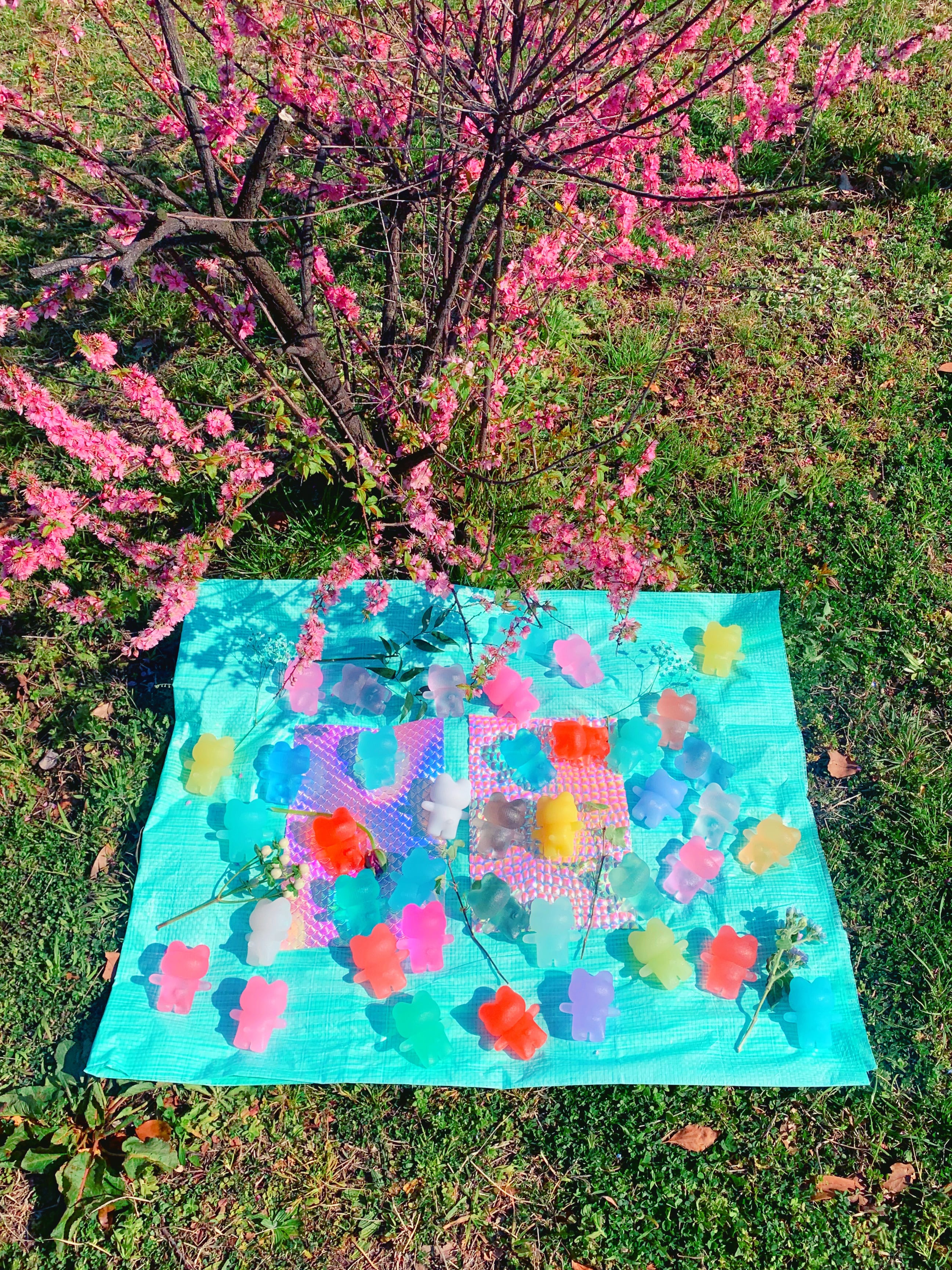 半透明のクマです。カチコチです。